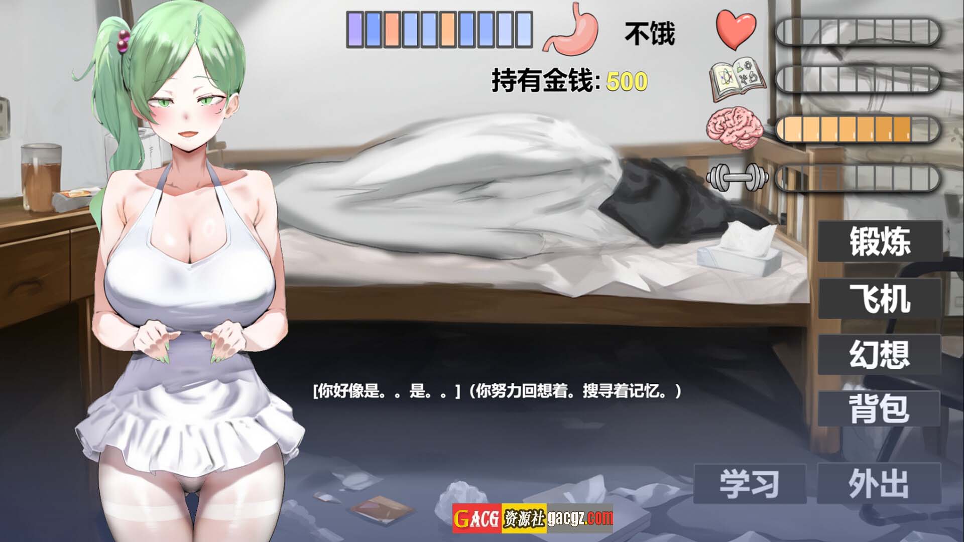 此游戏是以时间和各种数值驱动的游戏。例如【锻炼值】【幻想值】,各项数值的驱动会导致在不同的时间触发不同的结果。